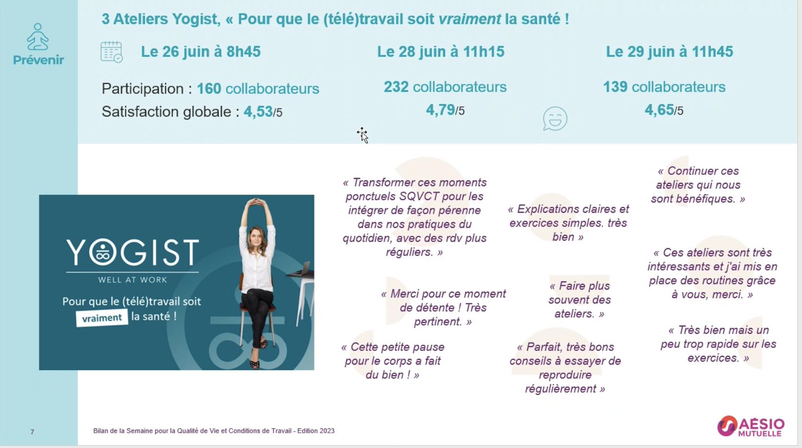 L’impact de l’atelier Yogist sur nos collaborateurs, je l’ai surtout mesuré avec le questionnaire de satisfaction recueilli en fin de session.